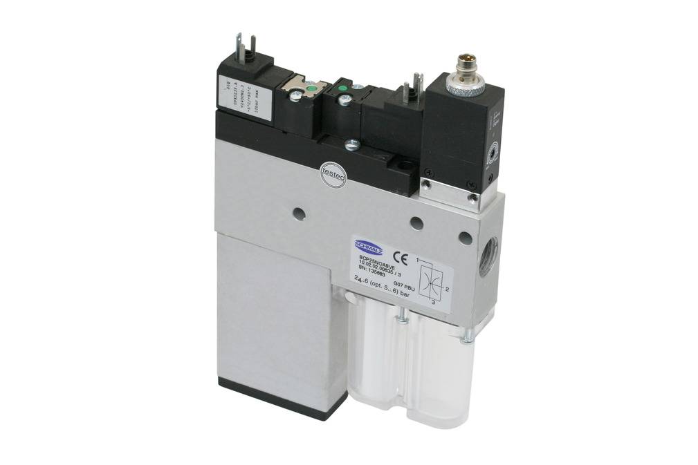- Клапан спуска воздуха NC (8), фильтр (3), глушитель (8) и невозвратный клапан - все встроены