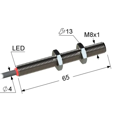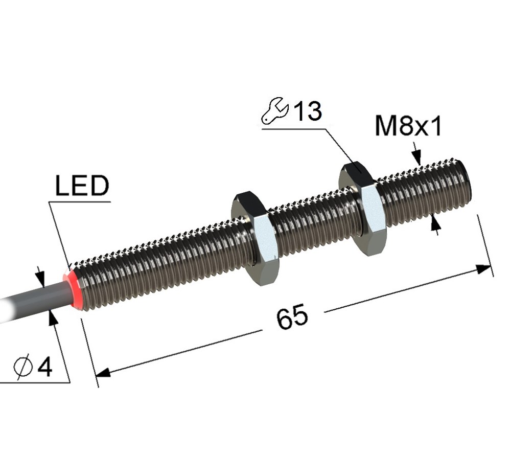 Электрическое подключение: кабель • Длина кабеля: 2м • Крепежная резьба: M8x1 • Класс защиты: IP67 • Рабочее напряжение: 12 ÷ 24 V DC • Материал корпуса: латунь