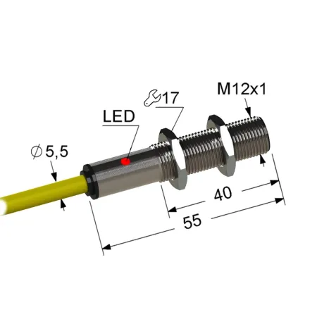 Дискретный выход: PNP/NPN • Диапазон измерения: 4000 мм • Электрическое подключение: кабель • Длина кабеля: 5м • Крепежная резьба: M12x1 • Класс защиты: IP67 • Рабочее напряжение: 12 ÷ 24 V DC • Материал корпуса: латунь