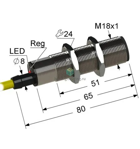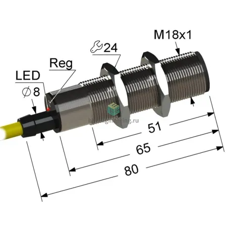 Электрическое подключение: кабель • Длина кабеля: 2м • Крепежная резьба: M18x1 • Класс защиты: IP67 • Рабочее напряжение: 12 ÷ 24 V DC • Материал корпуса: латунь