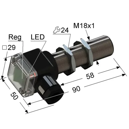 Дискретный выход: PNP • Диапазон измерения: 1000 ÷ 10000 мм • Электрическое подключение: клеммы • Крепежная резьба: M18x1 • Класс защиты: IP67 • Рабочее напряжение: 12 ÷ 24 V DC • Материал корпуса: латунь