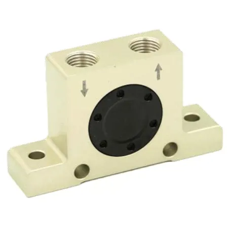 Пневмовибраторы используют энергию сжатого воздуха в качестве источника питания для привода шара из нержавеющей стали или турбины. За счет вращения масс смещенного относительно центра вращения создается вибрация. В определенном диапазоне частота может регулироваться давлением воздуха.