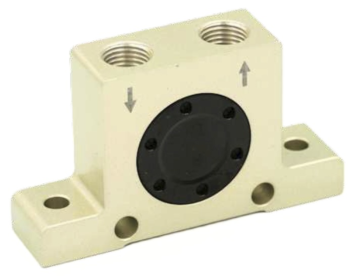 Пневмовибраторы используют энергию сжатого воздуха в качестве источника питания для привода шара из нержавеющей стали или турбины. За счет вращения масс смещенного относительно центра вращения создается вибрация. В определенном диапазоне частота может регулироваться давлением воздуха.