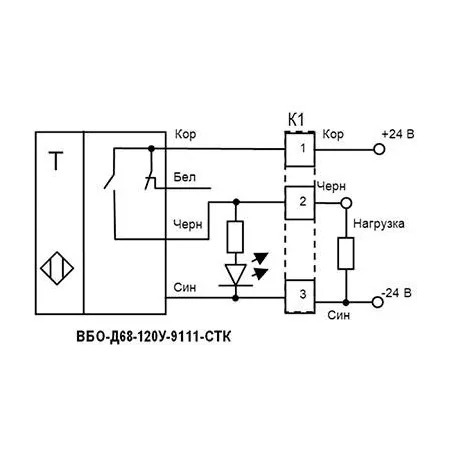 ВБО-Д68-120У-9111-СТК СЕНСОР - Оптический датчик световой барьер: приемник, PNP, до 20 м