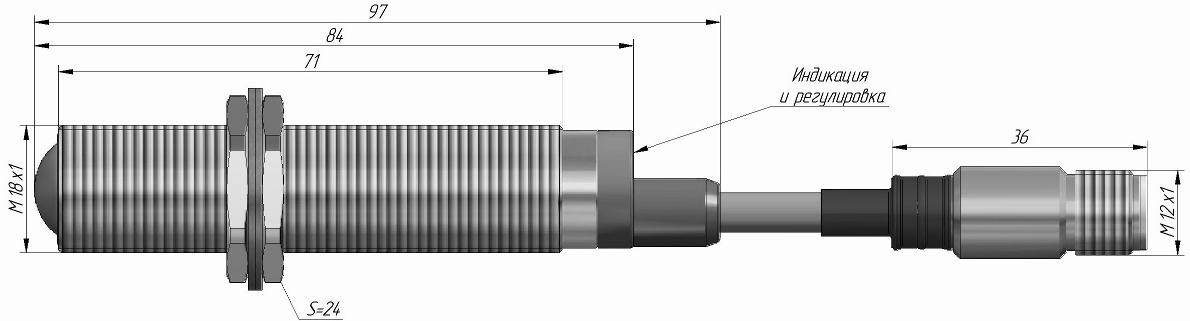 Диапазон измерения: 20000 мм • Электрическое подключение: разъём M12x1 • Крепежная резьба: M18x1 • Класс защиты: IP67 • Рабочее напряжение: 12 ÷ 24 V DC • Материал корпуса: латунь