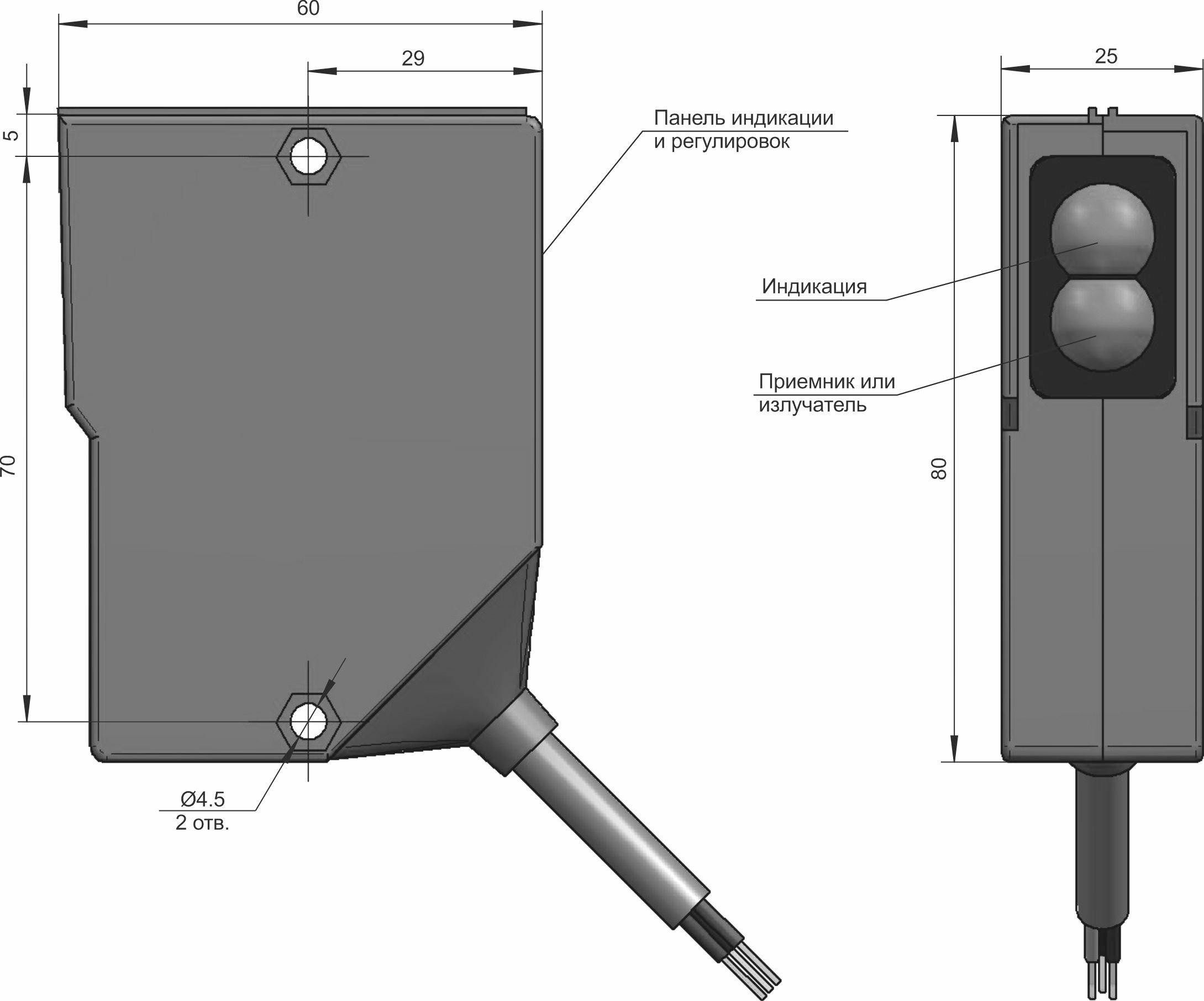ВБО-У25-80У-9113-С СЕНСОР - Оптический датчик световой барьер: приемник, PNP, до 16 м