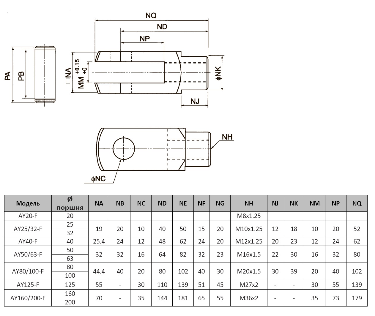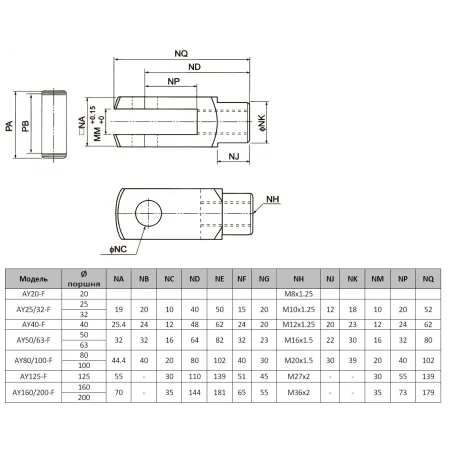 Вилки штока серии AY являются принадлежностями для монтажа пневмоцилиндров и применяются в пневматических системах оборудования различных отраслей промышленности.