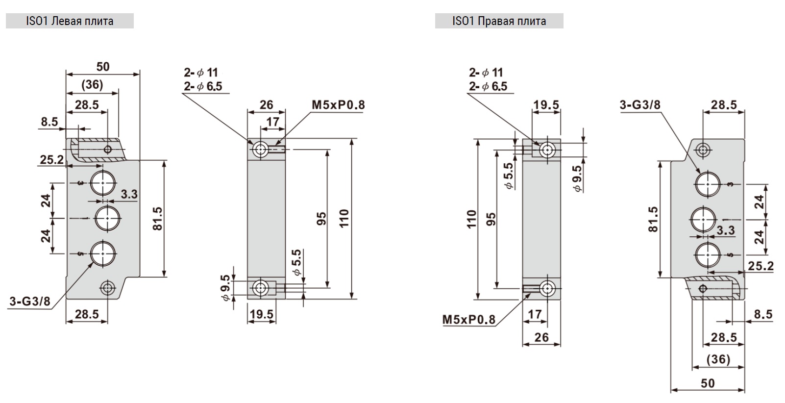 Типоразмер: ISO 1 • Стандарт: ISO 5599-1 • Подключение: G3/8