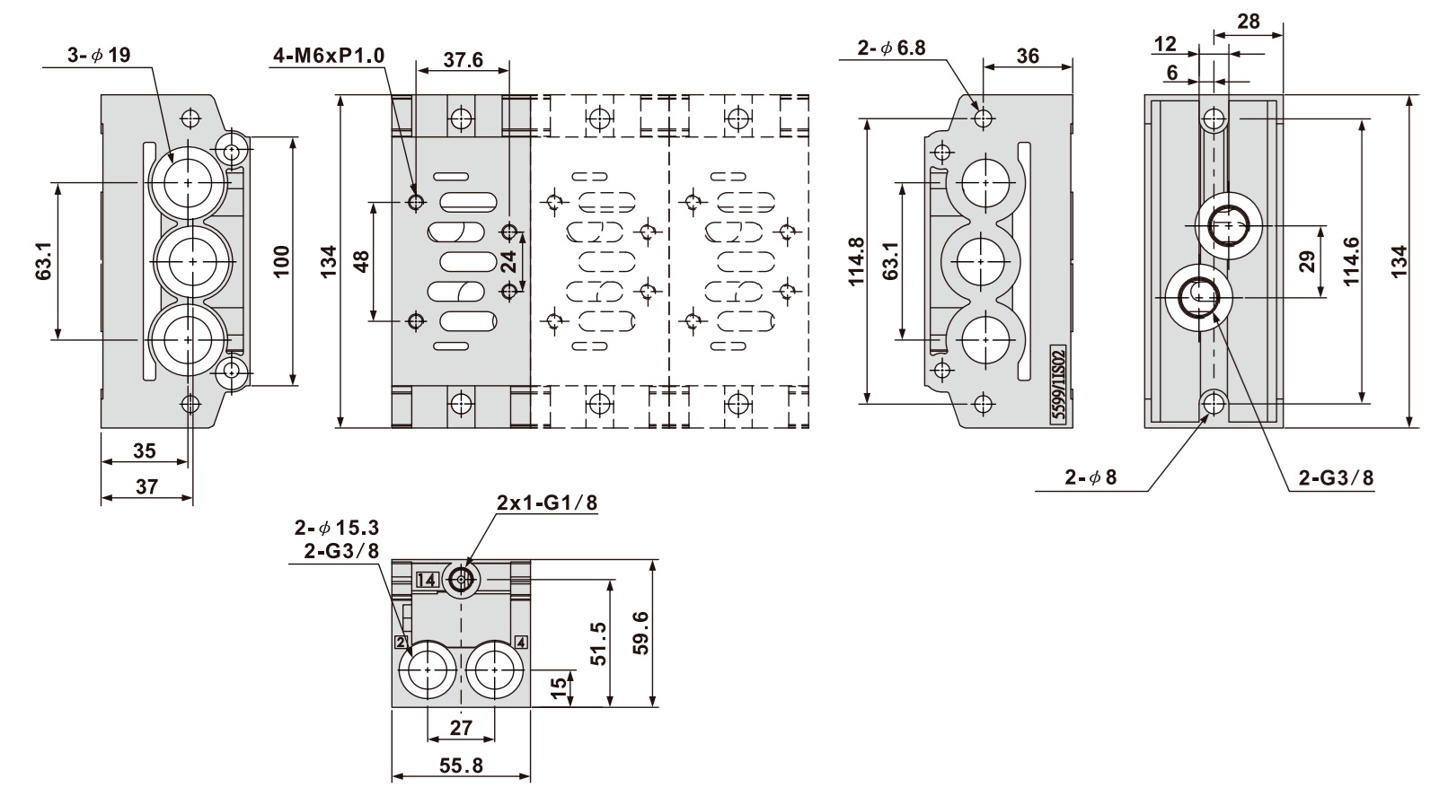 Типоразмер: ISO 2 • Стандарт: ISO 5599-1 • Подключение: G3/8