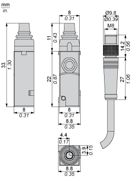 Дискретный выход: НЗ, PNP • Тип установки: заподлицо • Электрическое подключение: разъём M8x1 3-пин, кабель • Длина кабеля: 0.15м • Класс защиты: IP67 • Рабочее напряжение: 12 ÷ 24 V DC • Материал корпуса: пластик