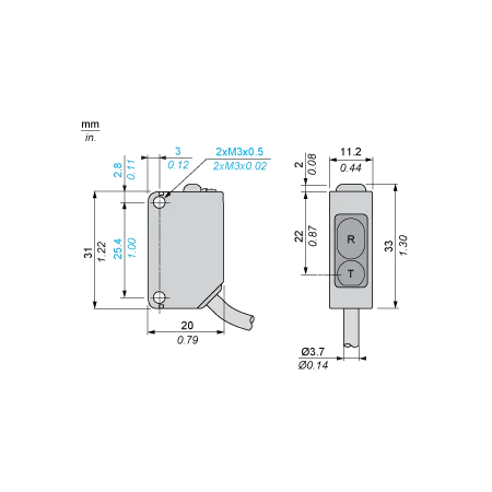 Дискретный выход: NPN • Диапазон измерения: 300 мм • Исполнение: с подавлением заднего фона • Электрическое подключение: кабель • Длина кабеля: 2м • Класс защиты: IP67 • Рабочее напряжение: 12 ÷ 24 V DC • Материал корпуса: пластик