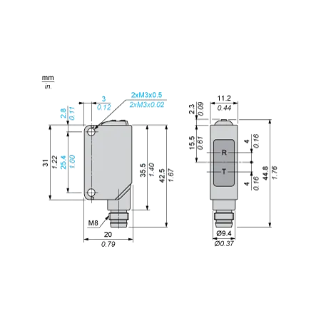 Дискретный выход: NPN • Диапазон измерения: 2000 мм • Электрическое подключение: разъём M8x1 4-пин • Класс защиты: IP67 • Рабочее напряжение: 12 ÷ 24 V DC • Материал корпуса: пластик